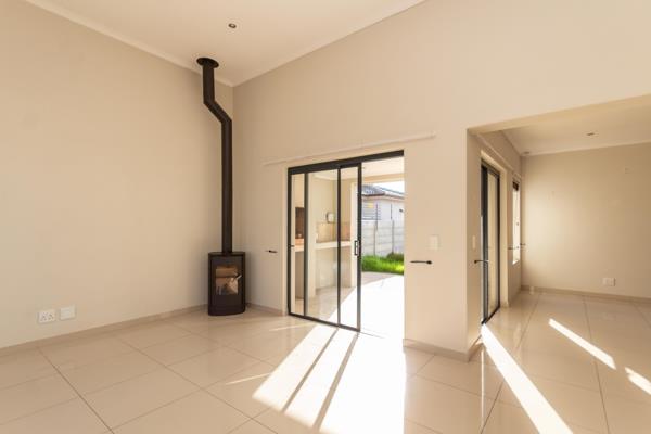 Designed for both relaxed living and entertaining, the home includes an Enclosed Braai room that opens out to a Private Garden, creating an ideal space for gatherings or quiet moments outdoors. With its secure setting, ample space, and stylish finishes, this property offers an exceptional lifestyle. The home features three spacious Bedrooms, including a Master Suite with an En-suite Bathroom. The modern open-plan Kitchen, complete with a Scullery and plumbing for a washing machine, flows seamlessly into a Dining area with impressive double-volume ceilings.