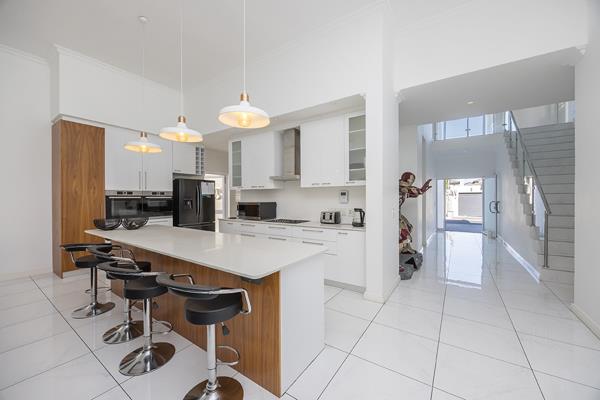 From the moment you step into the grand foyer, you''re greeted by soaring ceilings, luminous open-plan living spaces, and a sense of sophistication that carries throughout the home. At its heart lies the showstopping chefs kitchen a culinary haven featuring premium appliances, including double ovens, a sleek gas stovetop, and a generous central island where family and friends naturally gather. A fully-equipped scullery keeps the main space pristine and perfectly supports busy family life.