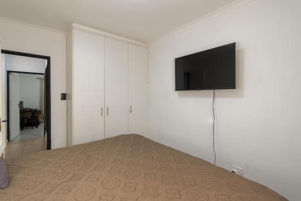 Both bedrooms are spacious with built-in cupboards, while the bathroom is fresh and modern, featuring a bath and shower combination for convenience.