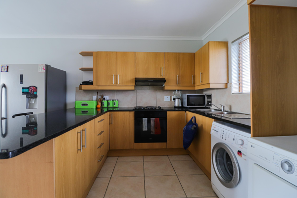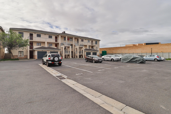 The kitchen boasts lovely granite counters with plenty of cupboard space.Open plan lounge and dining area overlooking balcony. Two double volume bedrooms with built in cupboards and one family bathroom.
