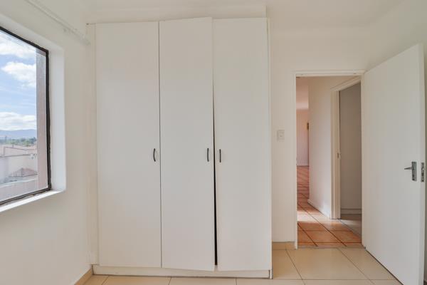 Discover this generously-sized top-floor apartment nestled in a well-located complex, offering easy access to nearby amenities. The unit boasts an open-plan design that seamlessly connects the lounge and dining area, creating a welcoming and functional living space. Enjoy the comfort of two double-volume bedrooms featuring built-in cupboards, and rest assured with the convenience of an included parking bay.