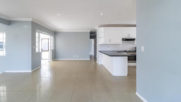 The open-plan lounge and dining area flow seamlessly into a generous enclosed braai room, creating the perfect setting for entertaining year-round. From here, doors open to a large, paved courtyard and private garden.