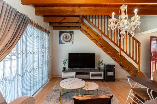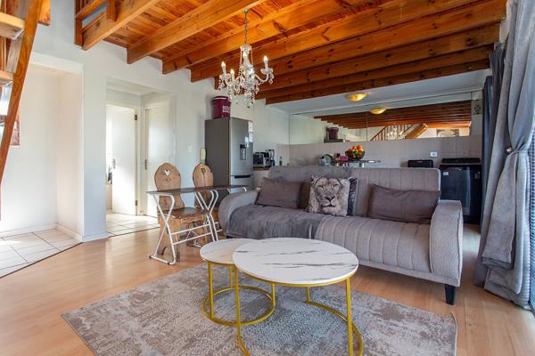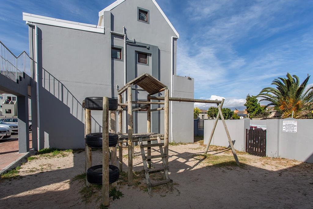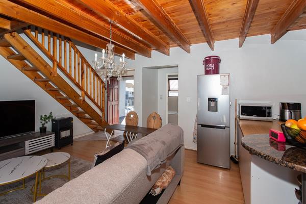 This first floor light and bright apartment offers an open plan lounge and kitchen. Laminated floors in the lounge and tiles in the kitchen. The kitchen has ample cupboards, plumbing point for washing machine and stove.