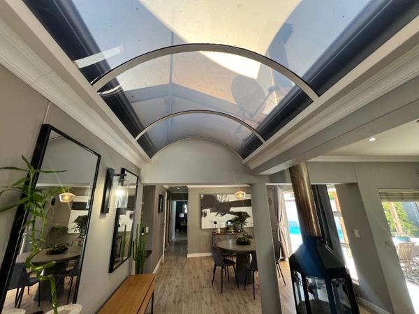 Impressive entrance hall, lounge with wood fireplace, kitchen with gas hob, spacious dining room, leading to covered patio with built in braai and stunning beach pool.