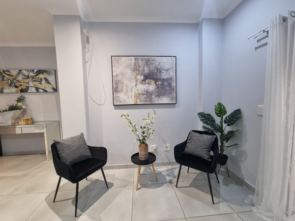 The home welcomes you with an airy open-plan lounge and dining area, flowing seamlessly to a generous braai roomwith stackable doors that open onto an impressive, private garden oasis. The outdoor space is a true standout: the rear garden features lush real grass perfect for kids and pets with body corporate approval, while the front garden showcases pristine artificial turf for year-round neatness and low maintenance.