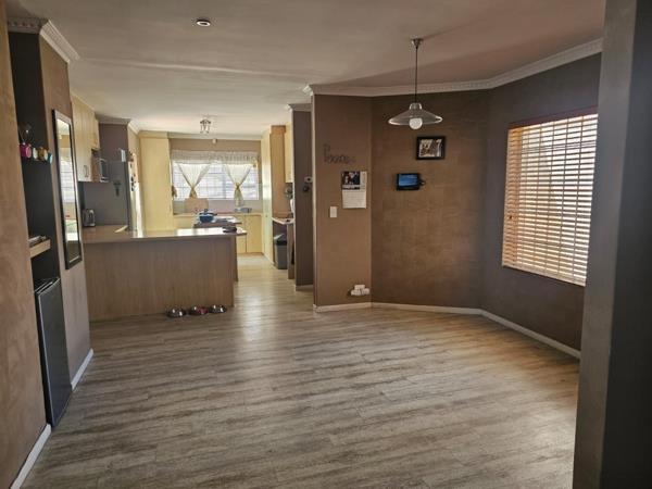 The open-plan layout connects the kitchen, dining, and lounge areas, creating a inviting space ideal for everyday living and entertaining. Outside, a covered patio provides the perfect setting with a built-in braai and swimming pool for family gatherings or relaxed weekends.