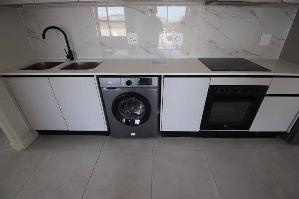 Located in upmarket area Sandown. Luxurious new modern 1 bedroom 1 bathroom apartment in Suikerbos. Are you looking for a brand new modern 1 bedroom lock up and go then this one is for you. This apartment is on the 3rd floor. Open plan modern kitchen, electric oven hob and extractor fan. Washing machine and refrigerator. Fibre and DSTV ready. and lounge. Appliances in kitchen washing machine and fridge. Oven and hob. Bathroom with spacious shower, toilet and vanity. Spacious bedroom with build in cupboards. Comfortable size lounge with sliding door opens up to balcony.