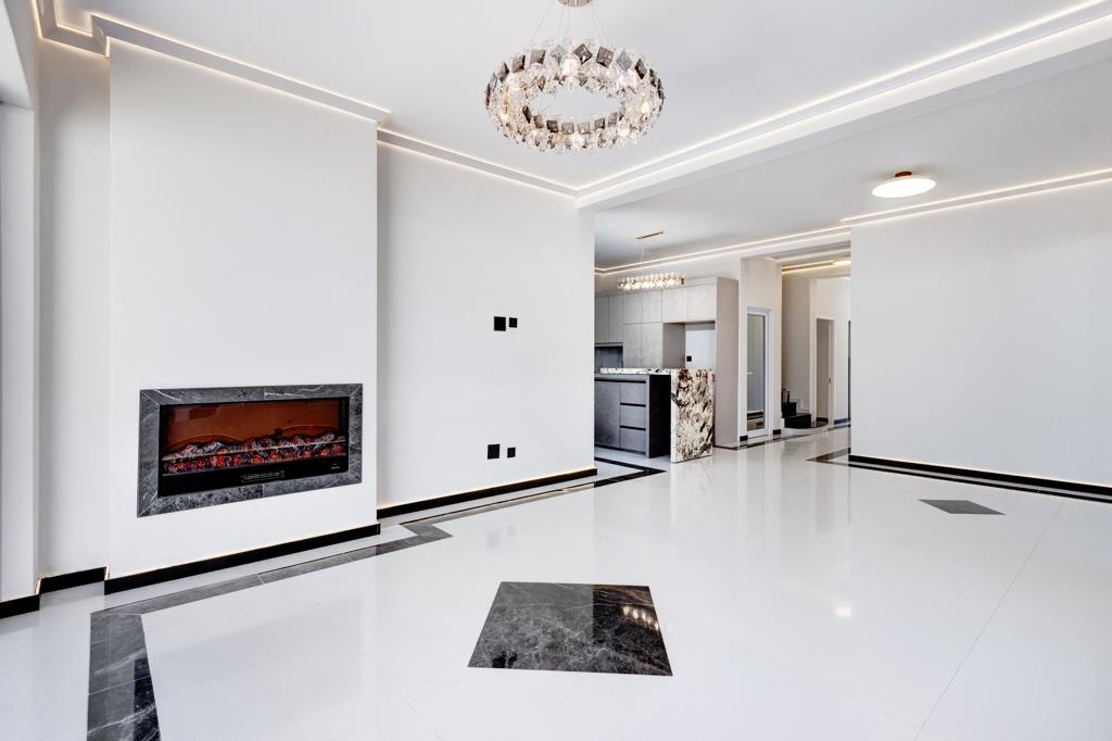 From the moment you enter the grand entrance hall, you''re enveloped in a symphony of exquisite finishes solid wood doors, Stine tiles that shimmer like art, and LED cornice lighting that dances at your command. The heart of the home is the kitchen, a marvel of innovation with a voice-command extractor fan, imported carved cabinets, and stone countertops that exude opulence.