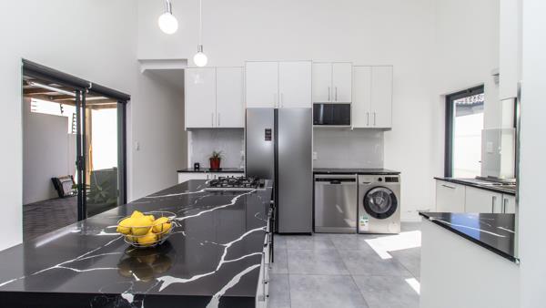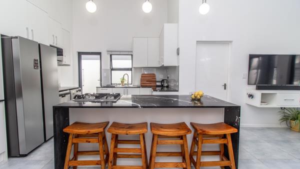 The entertainment area is a true standout, offering a covered braai area that effortlessly flows into the poolside, making it the ideal spot for alfresco dining and summer gatherings with family and friends.