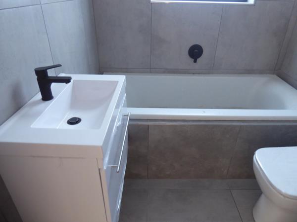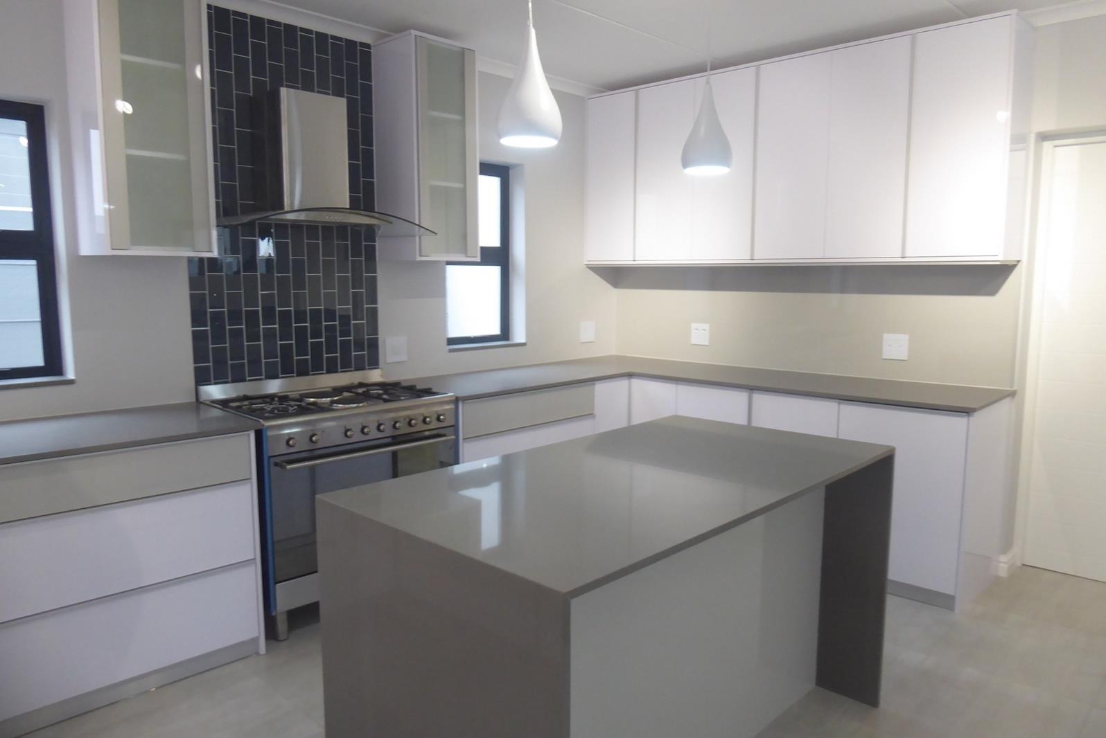 The entrance hall houses the stairwell and flows to the spacious living area, including the dining room and living room. The living area flows to the covered patio and garden, with sliding doors. The patio has a built in braai. The kitchen is open plan with a centre island and a large seperate scullery, that integrates seemlessly into the main kitchen but is hidden. There is a guest bedroom on the ground floor with an en-suite bathroom that doubles as a guest cloakroom.