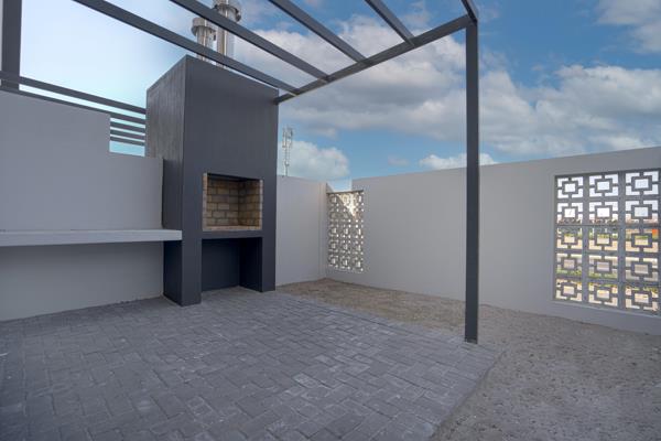 Designed for modern comfort, this home boasts an open-plan layout that seamlessly connects the kitchen, dining, and living areas, creating a bright and welcoming space. Step outside to a **paved entertainment area**, featuring a **built-in braai and countertop**, perfect for alfresco dining and gatherings.
