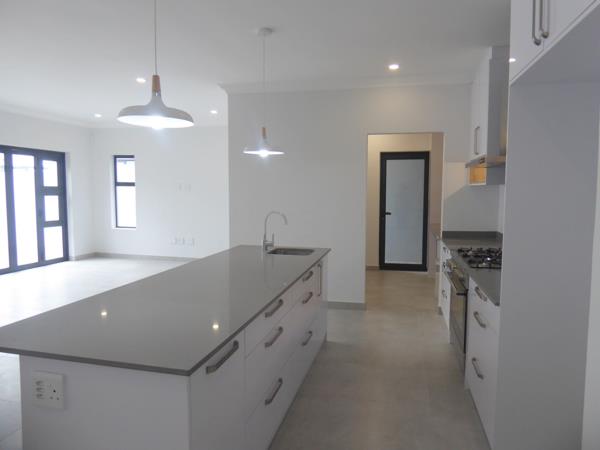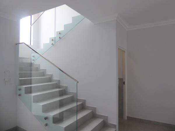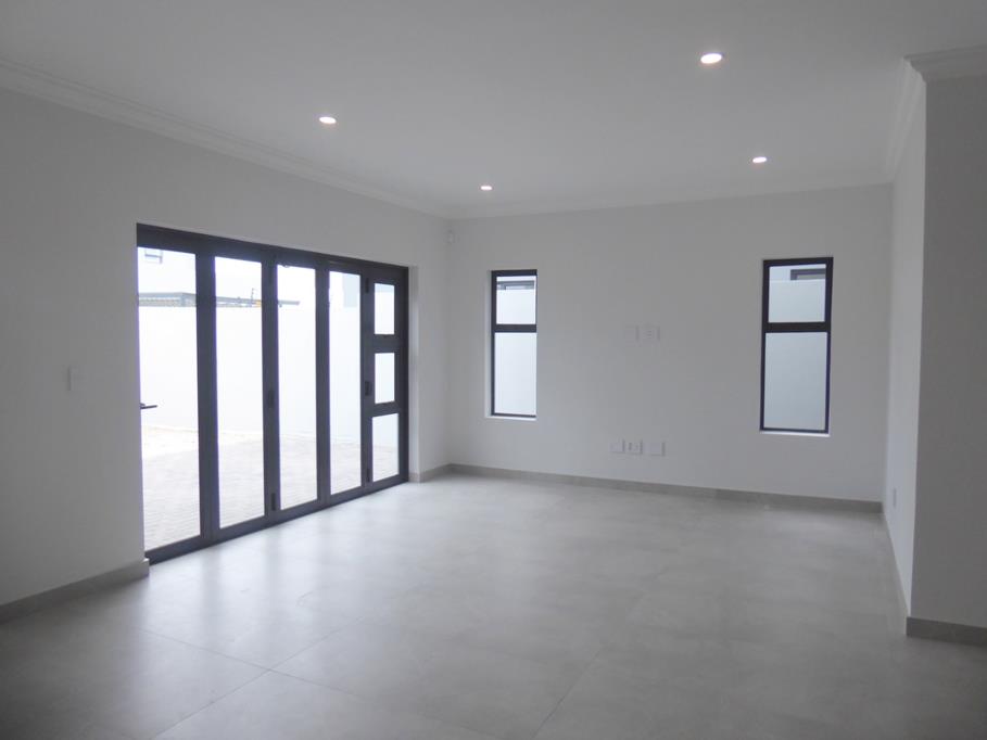 The ground floor offers very spacious living areas with the lounge, dining room and braai room, which flows to the private garden with sliding doors.