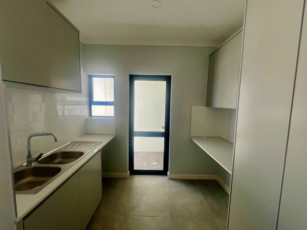 Modern expansive kitchen with space for larger fridge, gas hob and counter space to entertain. Scullery plumbed for three appliances and scullery door leads you out to your drying yard area.