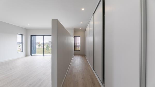 The heart of this home is its expansive open-plan living space, where a state-of-the-art gourmet kitchen takes center stage. Featuring a central island, sleek countertops, and a separate scullery, this kitchen is both a chefs dream and a space for easy family living. The seamless flow from the kitchen to the dining and living areas creates an inviting atmosphere, perfect for both everyday living and entertaining guests. A covered patio with a sparkling pool and a spacious braai room complete the ideal indoor-outdoor entertainment setup. To complete downstairs is a guest cloakroom.