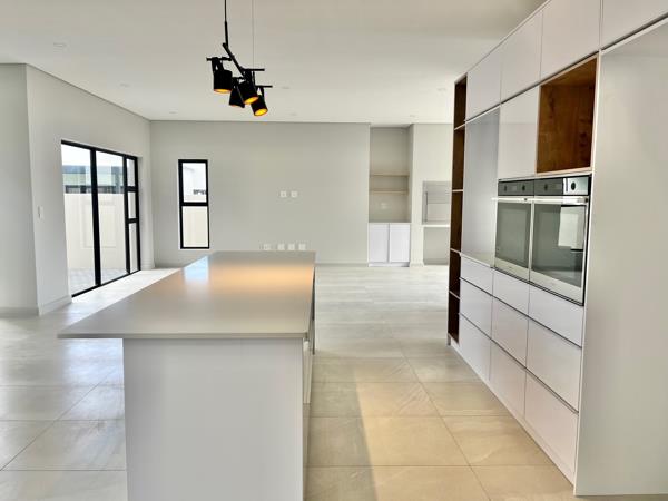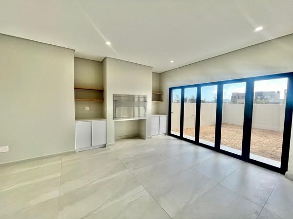The expansive open-plan living area is the heart of this home, designed with both family living and entertaining in mind. At its center is a state-of-the-art gourmet kitchen, complete with a central island, sleek countertops, and a separate scullerymaking it a dream for both casual family meals and sophisticated dining. The open flow from the kitchen into the dining and living areas creates an inviting atmosphere, perfect for hosting gatherings. A covered patio, sparkling pool, and spacious braai room offer the ideal setup for enjoying the outdoors and entertaining guests. A conveniently located guest bedroom and bathroom complete the downstairs layout.