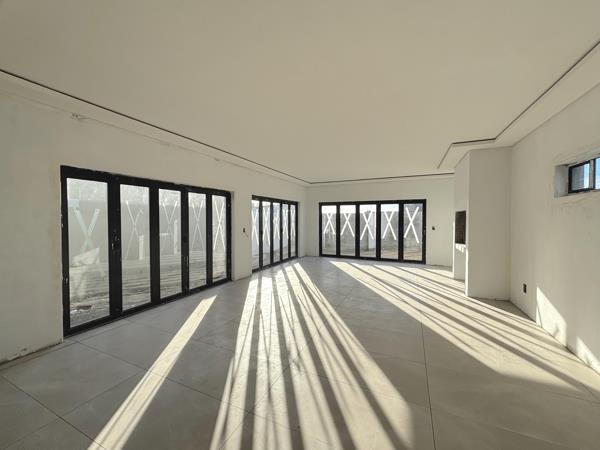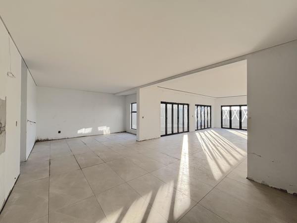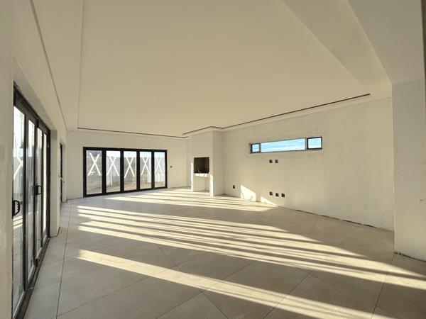 Downstairs, expansive open-plan living areas flow seamlessly, creating the ideal environment for both relaxation and entertaining. The heart of the home is a generous braai room enclosed by stacker doors, allowing natural light to flood in while providing the perfect space for year-round gatherings. The sleek and spacious kitchen includes a large scullery, keeping the main living areas clutter-free. A guest toilet downstairs adds extra convenience for visitors.