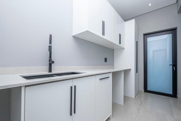 A sleek open-plan kitchen with quality appliances and ample counter space, plus a separate scullery to keep everything neat.