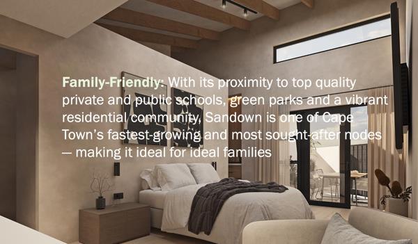 Family-Friendly: With its proximity to top quality private and public schools, green parks and a vibrant residential community, Sandown is one of Cape Towns fastest-growing and most sought-after nodes making it ideal for ideal families