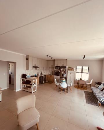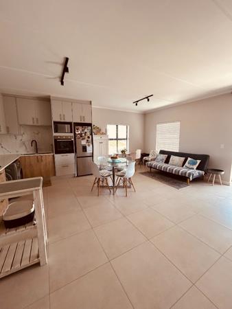 Discover contemporary living in this inviting 115 sqm apartment located in Sandown. The residence boasts a bright, spacious open-plan layout, seamlessly integrating the lounge, dining area, and a modern kitchen. The kitchen features sleek cabinetry, a stylish backsplash, and integrated appliances. Durable tiled flooring and a neutral colour palette flow throughout, complemented by abundant natural light and modern track lighting.