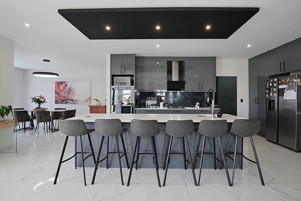 A large centre island with seating for eight