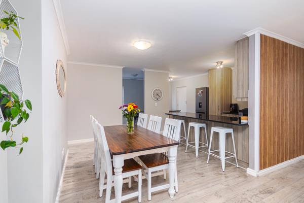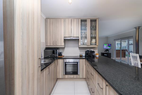 This charming three-bedroom residence offers a warm and inviting atmosphere from the moment you step inside. A wood-burning fireplace sets the tone for cozy winter evenings, perfectly complementing the open-plan living and dining areas. The spacious kitchen, seamlessly connected to the dining room and scullery, is designed for effortless entertaining and everyday functionality.