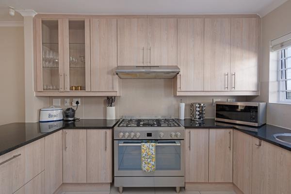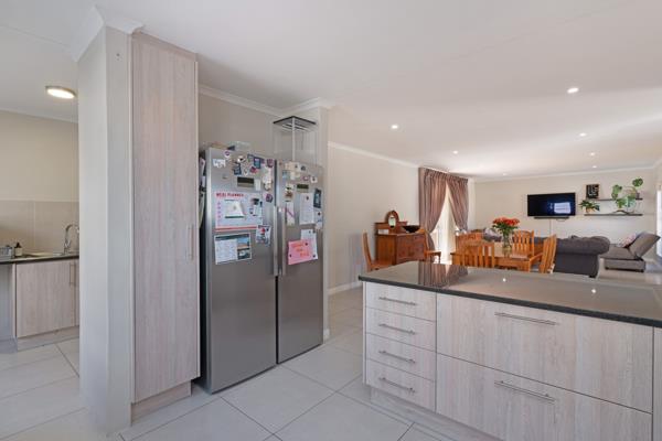 The heart of the home is the open-plan lounge, dining, and kitchen area, filled with natural light and ideal for family gatherings. The kitchen is fitted with a gas stove and flows seamlessly into a large scullery with space for three appliances perfect for keeping the main living space neat and tidy.
