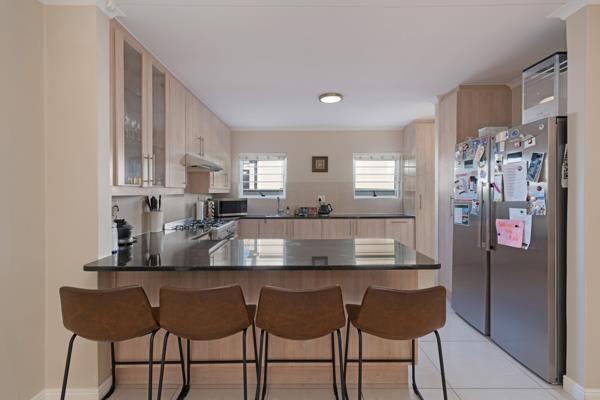 Step outside to the covered patio with a built-in braai, overlooking an inviting, landscaped garden a tranquil setting for weekend braais and outdoor relaxation. The garden is equipped with irrigation and a well point, making it both water-wise and low-maintenance.