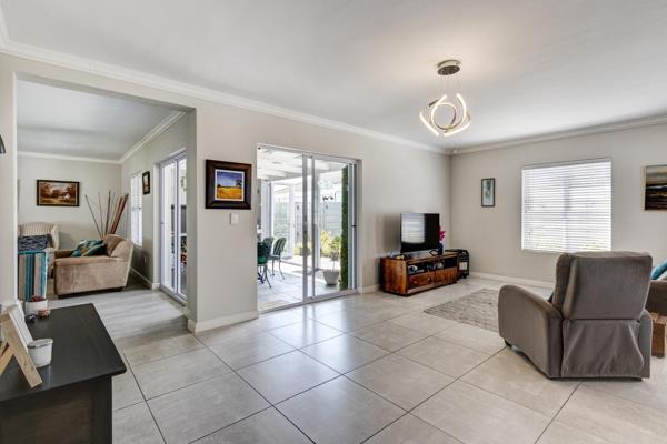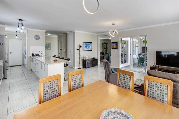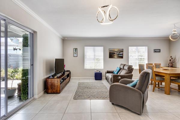 Step inside and experience seamless open-plan living at its best. The spacious living and dining area flows effortlessly into a modern, sleek kitchen with quality finishes and a separate scullery for added convenience. A separate lounge offers versatility for relaxation or entertaining, leading out through sliding doors onto a covered patio with built-in braai, overlooking a low-maintenance private garden perfect for effortless outdoor living.