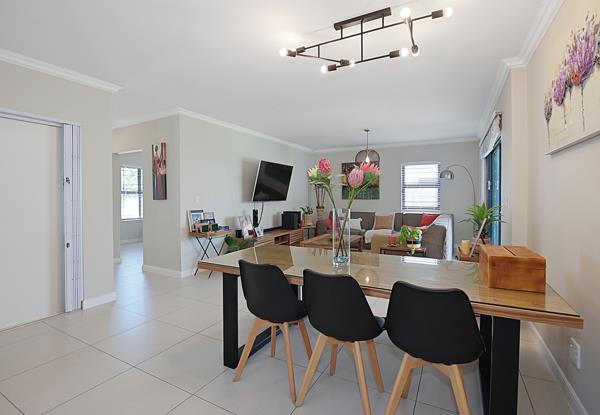 As you enter, youre welcomed to the left by a bright, enclosed lounge perfect for relaxing or entertaining. Straight ahead, a spacious open-plan living and dining area flows seamlessly into the well-appointed kitchen, featuring granite countertops and a separate scullery.