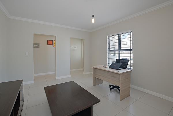 Down the passage, youll find a full guest bathroom and two generously sized bedrooms. The main bedroom is a true retreat exceptionally spacious with its own open-plan lounge area, offering the potential to convert into a separate entrance or self-contained flat if desired. It includes ample cupboard space thoughtfully divided into two sections, a large bathroom with both bath and shower, and a separate toilet. Patio doors open from the main suite onto the garden, and the room is fitted with air conditioning for year-round comfort.