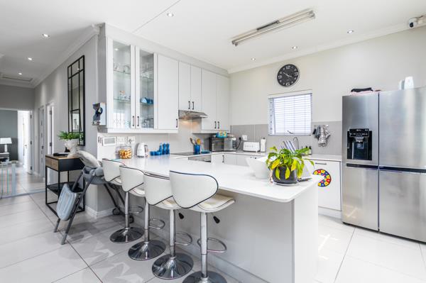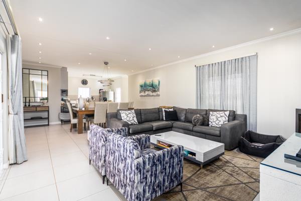 The spacious open-plan living area flows effortlessly into a large braai room overlooking the sparkling poolideal for entertaining family and friends. A wet bar adds to the entertainment appeal, while the ample parking space easily accommodates guests and those with extra vehicles or toys.
