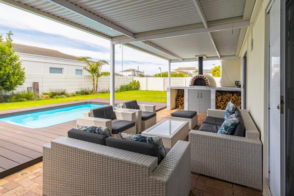 This home has a stunning flow, with all areas opening up onto the north-facing wind sheltered back garden where youll find a lovely pool and deck area, as well as a built-in pizza oven. Each bedroom is very well sized, with the main en-suite as well as a second full bathroom. The kitchen is kitted out with modern finishes as well as scullery space so its super neat and tidy. This home also has a study which is currently converted into the kids play area.