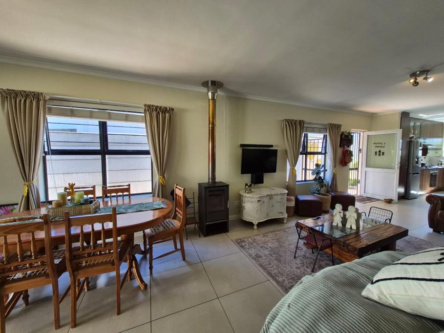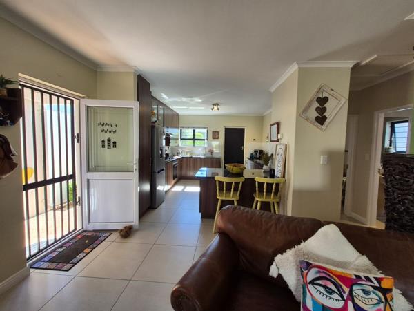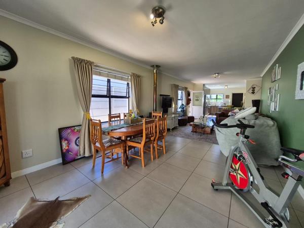 Enjoy a spacious open-plan living area, designed for easy living and entertaining. The kitchen boasts granite countertops, built in oven, gas hob and two plumbing points, making it both practical and modern. The lounge and dining area, complete with a charming wood-burning fireplace, opens seamlessly to a covered patio with a built-in braai, overlooking a lush, green garden fed by a boreholeperfect for year-round outdoor enjoyment.