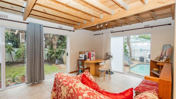 Sunny and bright, great for entertaining. Three bedroom house looking out to pool / Lapa / braai & garden.