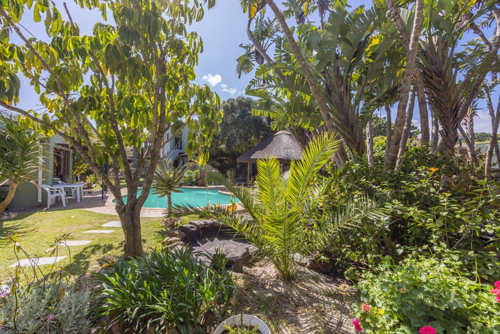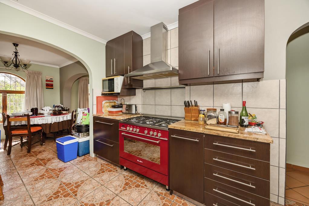 This second guest house is also divided into three sections. The main house includes four bedrooms, a kitchen, two living rooms, a dining room, and a built-in braai with a bar. The upstairs studio apartment offers partial views of Table Mountain, complete with a kitchen, living space, and en-suite bathroom. There is also a self-contained garden cottage with a kitchen, lounge, en-suite bedroom, and a private patio. Another self-contained garden cottage overlooks the pool and features a kitchen, lounge, and en-suite bedroom.