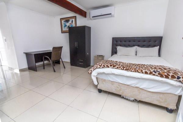 The exceptional property boasts with separate Lounge and Dining areas, Porcelain tiling throughout, Wetbar, raised under-cover Entertainment area with Yacht decking overlooking the sparkling Pool, Fully fitted Kitchen with range of top and bottom cupboards, 7 Bathrooms all en suite 7 Bedrooms with flat screen TVs in all and Air-conditioning in 2, Designer blinds, Dual Electric gated entrances, secure parking for 8 cars, 2 double covered Carports, JoJo Tank, essential Borehole, full perimeter Electrified fencing and large low maintenance Garden.