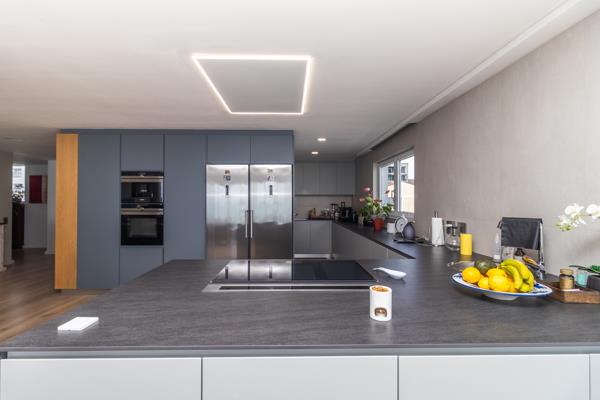 This seller has spared no expense, from the FENSTER SHUCO profile double glazed windows, to the designer Italian kitchen. A stylish stove with a retractable extracting fan and fitted with Siemens appliance including a built-in coffee machine. This kitchen has its very own separate laundry-with plumbing for 3 machines. Lots of built-in cupboards with a gorgeous view all day long...making this kitchen fit for any master chef.