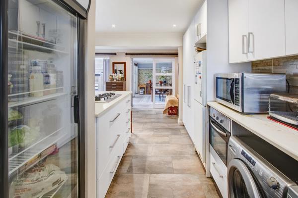 The kitchen is a chef''s delight, with a sleek, modern design, a center island, a gas hob, plenty of cabinets, and two plumbing points. It is open plan to the living room, where aluminum stacker doors create a seamless connection to the low-maintenance braai area. This is the highlight of the property, offering a perfect spot to relax with friends around the fire and forget you''re in a complex.