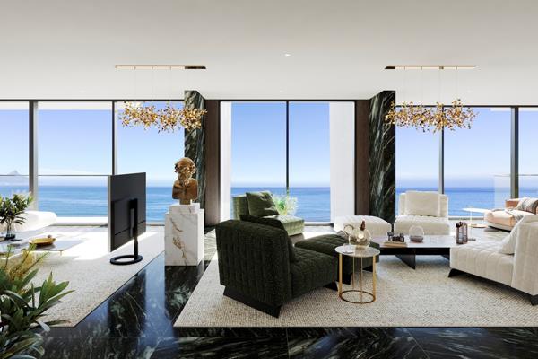 Penthouse F1 is the pinnacle of luxury coastal living, offering expansive spaces and unmatched elegance. This exclusive residence features a grand open-plan living area with two lounges, a dining room, and a chefs kitchen equipped with premium appliances and a spacious island. The layout includes three luxurious bedrooms, each with en-suite bathrooms, as well as a private study for added versatility.