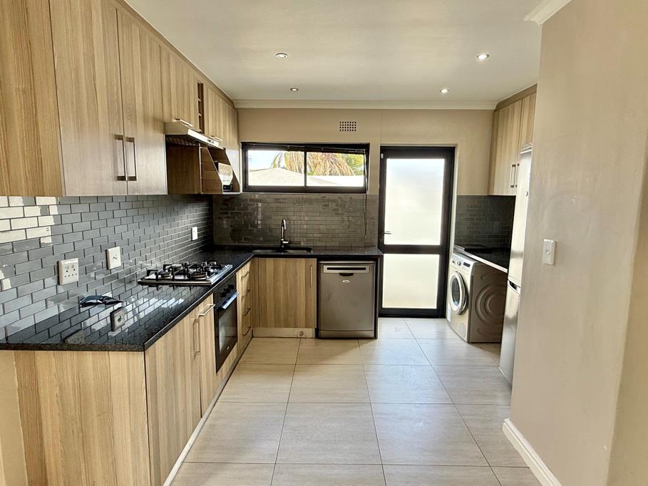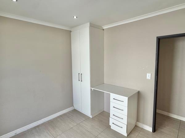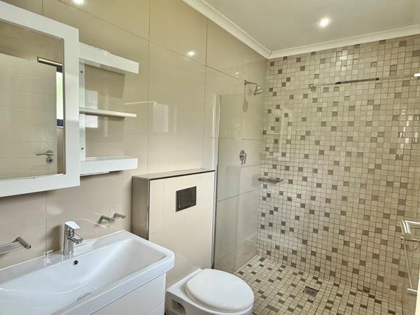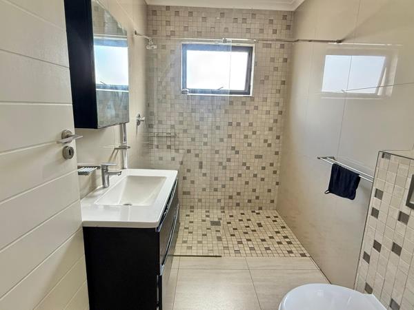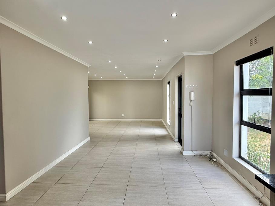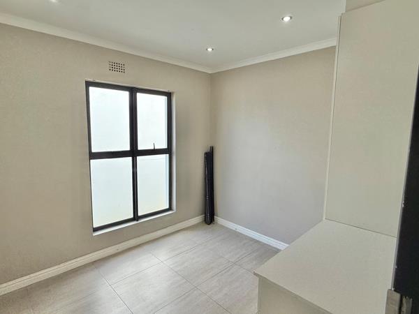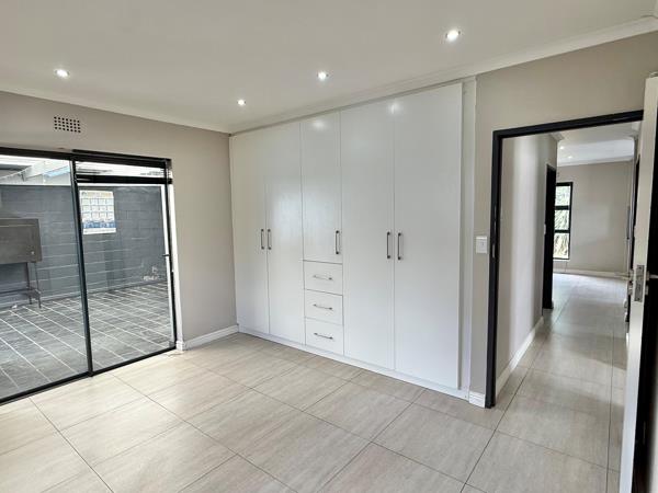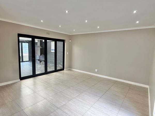 The home features a spacious open-plan living area that seamlessly connects to a stylish, enclosed braai roomperfect for year-round entertaining. The modern kitchen complements the living space, while the generous garden with a sparkling pool provides a private outdoor retreat.