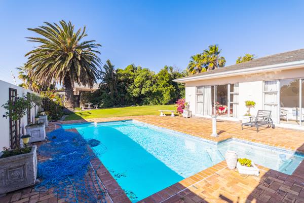 Step into a bright open-plan lounge and dining area featuring a built-in bar and cozy fireplace ideal for relaxed evenings or hosting guests. Large sliding doors open onto a covered patio with a built-in braai, overlooking a sparkling pool and a generous stretch of lawn, creating the ultimate indoor-outdoor flow.