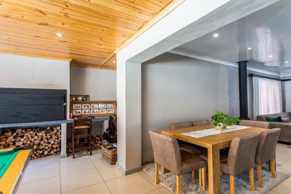 An additional entertainment room with a built-in braai creates the perfect setting for year-round gatherings. This space opens out to the pool area, making indoor-outdoor entertaining effortless and enjoyable.