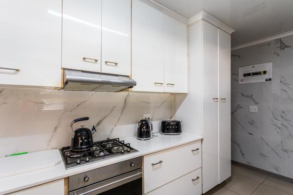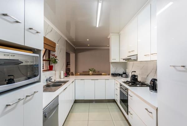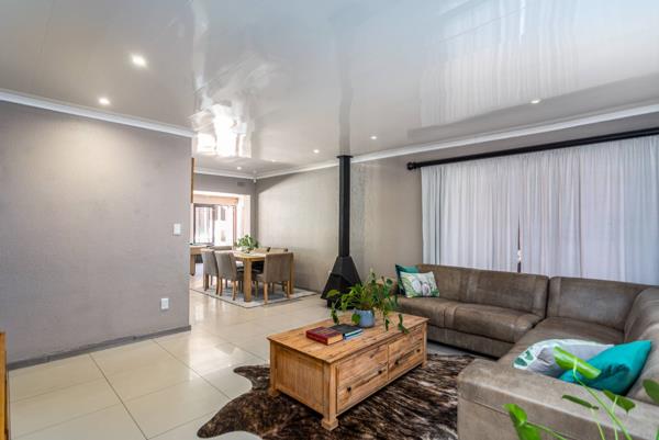 The heart of the home is the open-plan living area, seamlessly combining lounge, dining, and kitchen spaces perfect for modern family living. The kitchen is fitted with a gas stove, ideal for those who love cooking and entertaining.