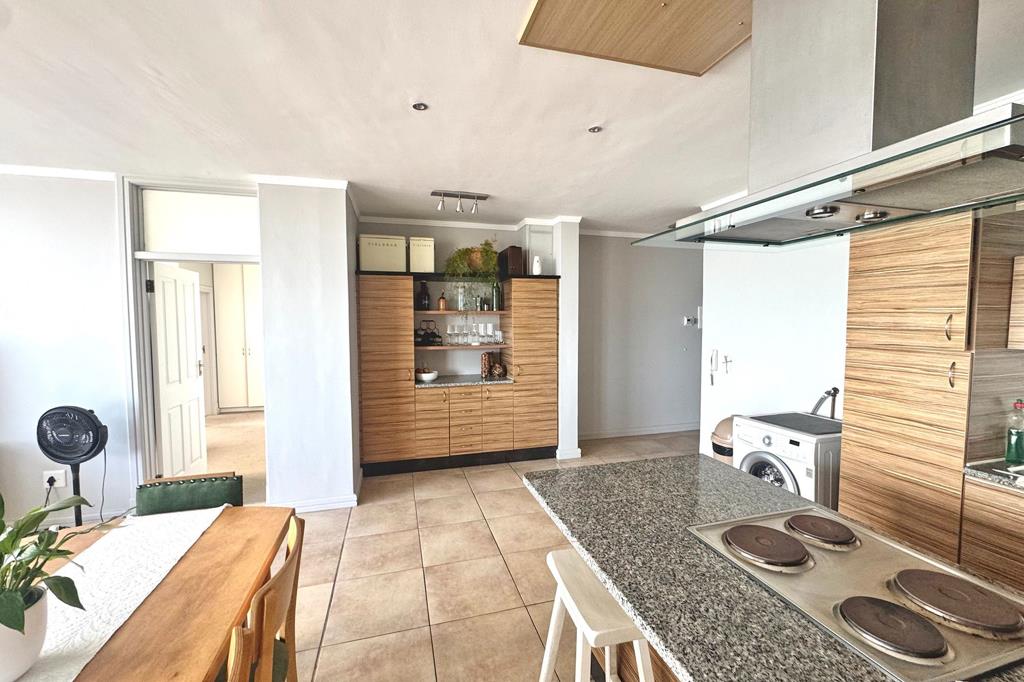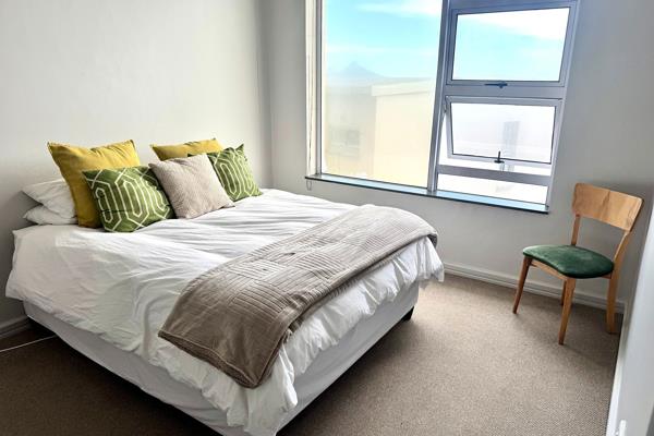 The main bedroom has an en-suite bathroom and the two other bedrooms share a second bathroom. Access to the wrap-around balcony is provided from both the living area and a bedroom, and offers an amazing view of Table Mountain.