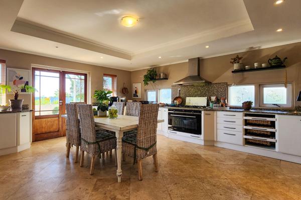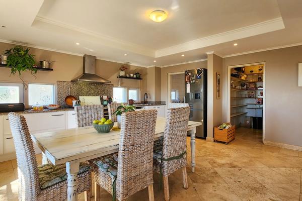 The heart of the home is a generous separate kitchen and dining area, where the dining table is perfectly centered to create a warm and inviting atmosphere. The kitchen includes ample counter space, a walk-in pantry, and a separate scullery, ideal for busy family life and entertaining guests.