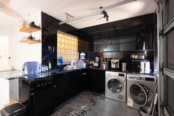 The ground level features a garage area that has been cleverly converted into additional accommodation with its own private entrance and small courtyard. This level comprises one bedroom, one bathroom, and a versatile open-plan space currently used as a kitchen, dining, and work area. The conversion can easily be reversed to reinstate the garage if desired.