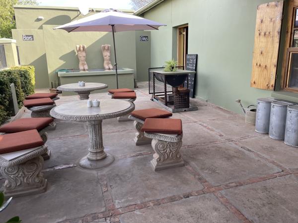The restaurant operates on weekends from Friday to Sunday daytime. It has built in furniture which is considered a fixture and would remain, some booths for example. There are two outdoor areas and an inside dining area. It has a kitchen with a large pantry/ storeroom and a bar. There is a real fireplace, very welcome in colder months. There are two WCs servicing the restaurant/bar and one bedroom, with a shower in the Female booth.