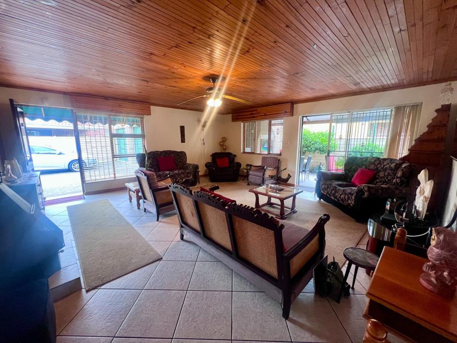 The upper level features a private bedroom with its own en-suite bathroom, ideal for guests, a teenager, or even a home office setup. Downstairs, youll find three additional bedrooms, all fitted with built-in cupboards. The main bedroom can be easily closed off, creating a private retreat complete with a full en-suite bathroom. The second guest bathroom features a shower, providing convenience for both family members and visitors. One of the guest bedrooms also opens directly to the garden, adding to the homes versatility and natural flow.