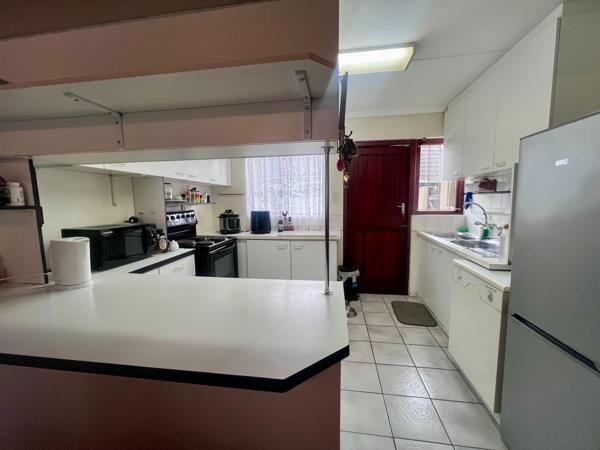 Step outside to the covered patio, complete with a built-in braai, where you can enjoy relaxed afternoons with family and friends. The garden includes a 2,500-litre water tank, helping to maintain your outdoor space throughout the seasons.