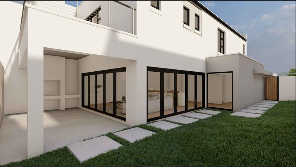 The interiors are light-filled and open, with seamless flow between the living areas and a covered patio featuring a built-in braai, perfect for entertaining year-round. The kitchen forms a stylish centerpiece with its sleek island, adjoining scullery and practical pantry, all crafted for ease of use.